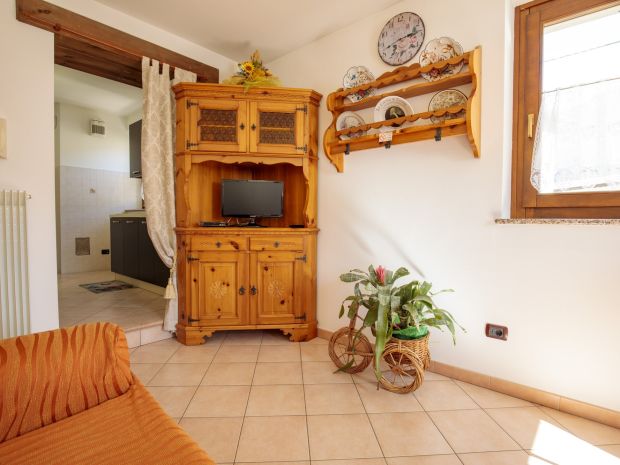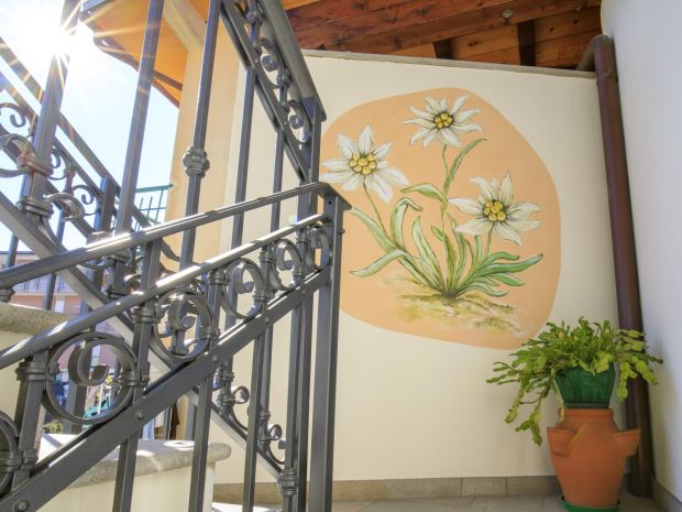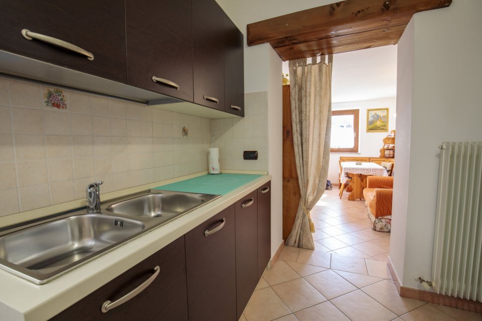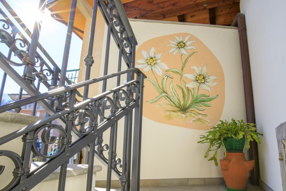L’affittacamere Stelutes Alpines si svilppa al primo piano con all'ingresso un confortevole e luminoso soggiorno, adiacente una spaziosa cucina dalla quale si accede ad un disimpegno che porta alle due camere ed al bagno.