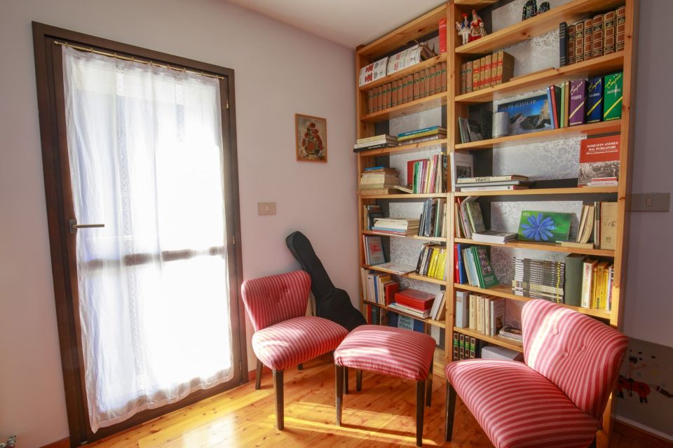 Al piano superiore si trovano le camere, una saletta lettura con libreria, un ampio poggiolo in legno rivolto alle piste sciistiche dello Zoncolan e sull’ampio giardino rustico dove, nei mesi estivi, è possibile prendere il sole.
