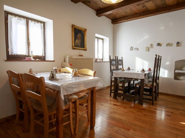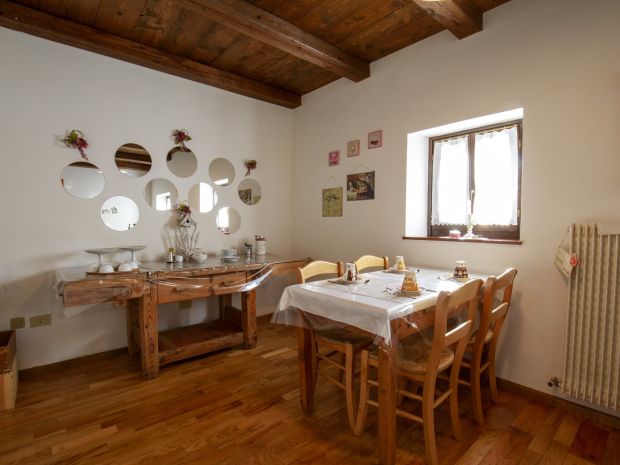 La struttura si sviluppa su due piani. Al piano terra troviamo le stanze comuni, saletta colazioni, saletta caminetto e la cucina.